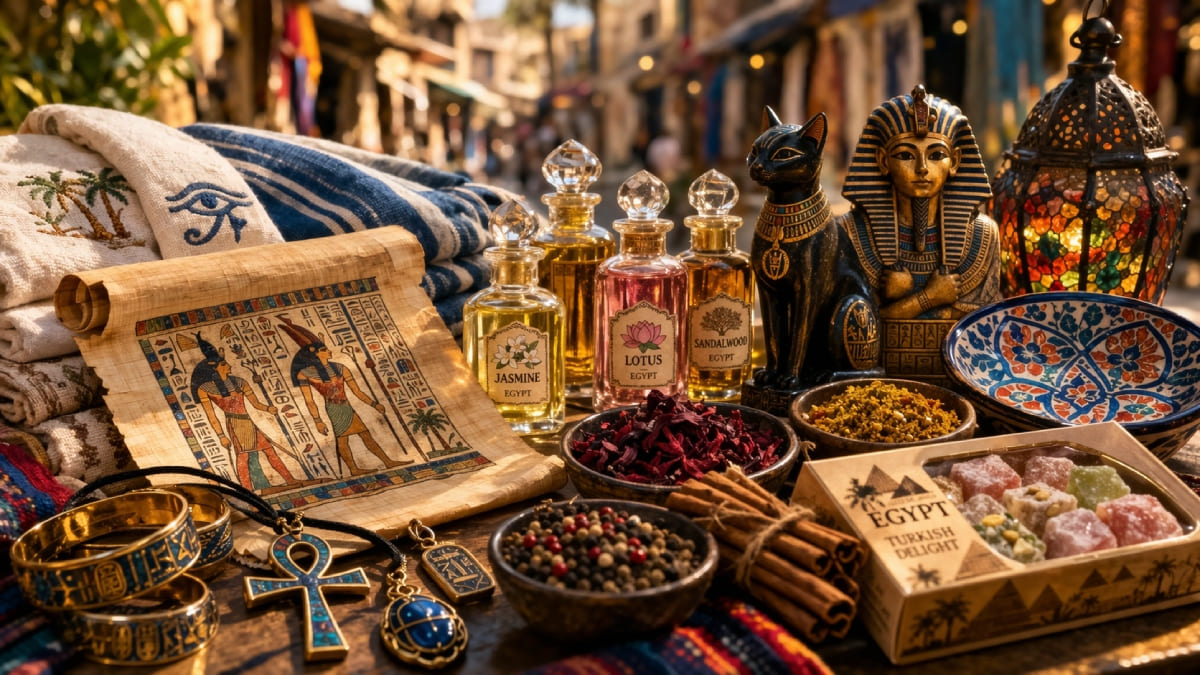 Поездка в Египет редко заканчивается без чемодана сувениров и подарков, но на месте легко растеряться: базары шумят, продавцы зазывают, а глаза разбегаются от масел, папируса, хлопка и сладостей.