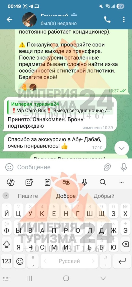 Просто напишите нам в WhatsApp или Telegram - и всё! Укажите название экскурсии, дату, отель, номер комнаты и свой контактный телефон. На сайте вы найдёте удобные иконки - кликаете, и уже на связи с нами.