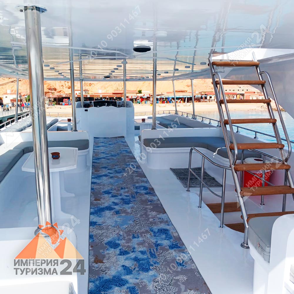 Индивидуальная яхта в Шарм-эль-Шейхе — это не просто аренда судна, а полноценный день в Красном море, где всё происходит по вашему сценарию. Вы выбираете маршрут: отправиться к острову Тиран с его живописными рифами или в сторону заповедника Рас-Мохаммед с обязательной остановкой у Белого острова — знаменитой песчаной косы посреди моря, которую нередко называют «египетскими Мальдивами» за её белоснежный песок и нереальный цвет воды. Формат яхты тоже подбирается под ваше настроение: классическая элегантная двухпалубная яхта или атмосферное судно в пиратском стиле — стоимость практически одинаковая, разница лишь в визуале и настроении отдыха. С утра за вами приезжает индивидуальный трансфер и доставляет в порт, после чего начинается целый день свободы: остановки для купания и снорклинга на лучших рифах, отдых на палубе, солнечные ванны, красивые фото без посторонних гостей и ощущение, что всё море сегодня только для вас. В стоимость уже включён обед и безалкогольные напитки, а при желании можно добавить дайвинг, обед из морепродуктов или создать по-настоящему праздничную атмосферу — заказать торт, цветы и оформление яхты для дня рождения, годовщины или романтического сюрприза. Это формат отдыха для тех, кто ценит приватность, комфорт и хочет провести особенный день в одном из самых красивых уголков Красного моря