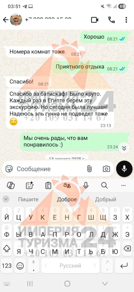 Просто напишите нам в WhatsApp или Telegram - и всё! Укажите название экскурсии, дату, отель, номер комнаты и свой контактный телефон. На сайте вы найдёте удобные иконки - кликаете, и уже на связи с нами.