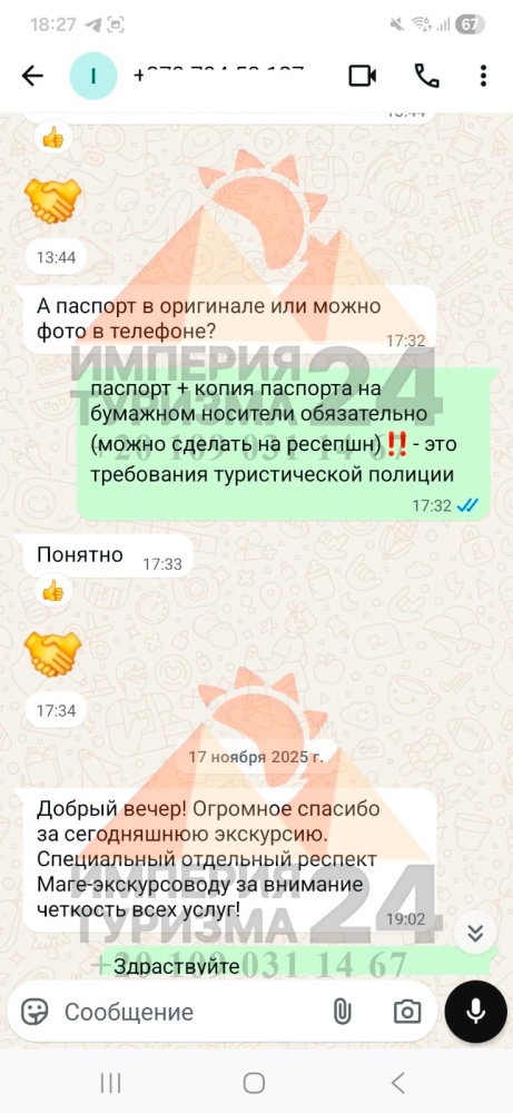 Просто напишите нам в WhatsApp или Telegram - и всё! Укажите название экскурсии, дату, отель, номер комнаты и свой контактный телефон. На сайте вы найдёте удобные иконки - кликаете, и уже на связи с нами.