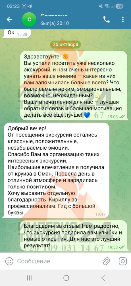 Просто напишите нам в WhatsApp или Telegram - и всё! Укажите название экскурсии, дату, отель, номер комнаты и свой контактный телефон. На сайте вы найдёте удобные иконки - кликаете, и уже на связи с нами.