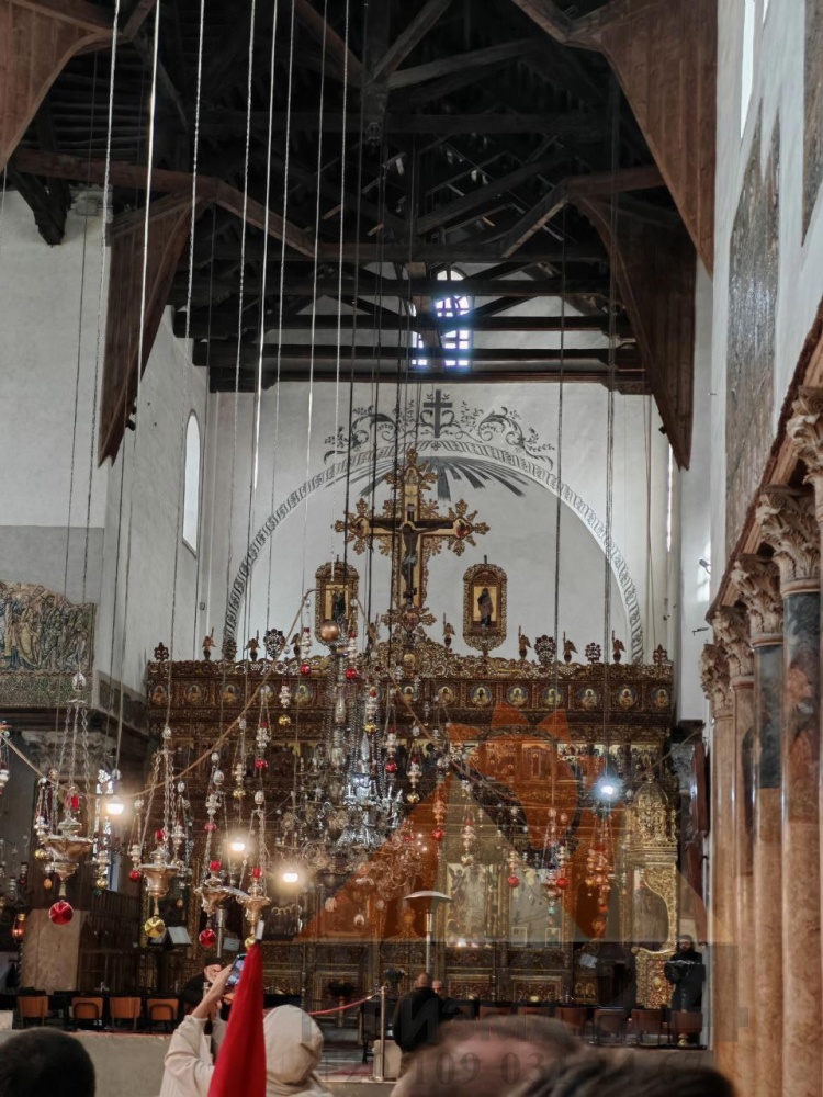 Едем в Вифлеем, посещаем Храм Рождества Христова, здесь заходим в пещеру, где Дева Мария родила Иисуса;