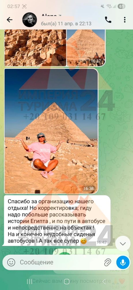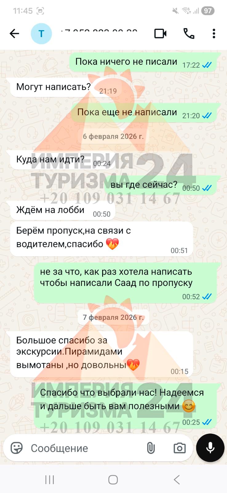 Просто напишите нам в WhatsApp или Telegram - и всё! Укажите название экскурсии, дату, отель, номер комнаты и свой контактный телефон. На сайте вы найдёте удобные иконки - кликаете, и уже на связи с нами.
