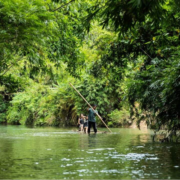 Далее маршрут переносит вас к слонам — символам доброты и силы в тайской культуре. Участников ждёт шоу со слонёнком, катание на слонах и купание с малышом, что дарит незабываемые эмоции и ощущение настоящего контакта с животным. Затем вас ожидает сплав на бамбуковых плотах по тихой реке среди джунглей: вид зелени, неспешный поток воды и пение птиц создают атмосферу полного расслабления. Завершается день посещением черепашьей фермы, обедом с традиционными блюдами и фото-остановкой у водопада.