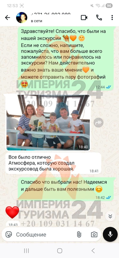 Просто напишите нам в WhatsApp или Telegram - и всё! Укажите название экскурсии, дату, отель, номер комнаты и свой контактный телефон. На сайте вы найдёте удобные иконки - кликаете, и уже на связи с нами.