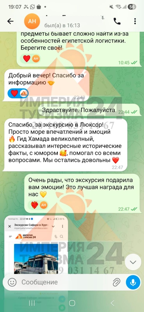 Просто напишите нам в WhatsApp или Telegram - и всё! Укажите название экскурсии, дату, отель, номер комнаты и свой контактный телефон. На сайте вы найдёте удобные иконки - кликаете, и уже на связи с нами.