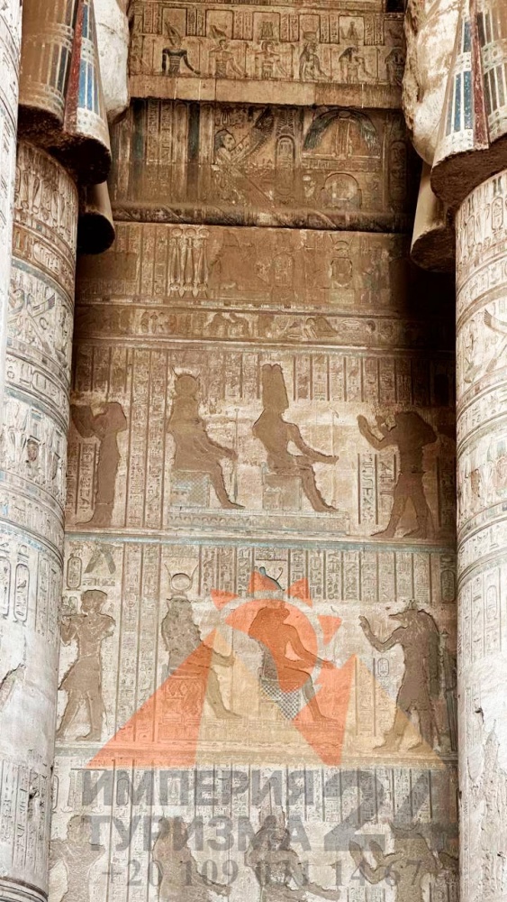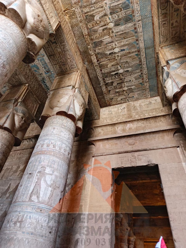 Именно здесь стоит прекрасно сохранившийся храм Хатхор — богини радости, красоты и музыки. Его колонны и барельефы поражают мастерством, а знаменитый Дендерский зодиак хранит тайны древних времён и переломных моментов истории человечества.