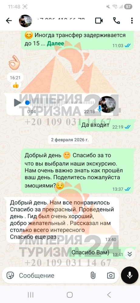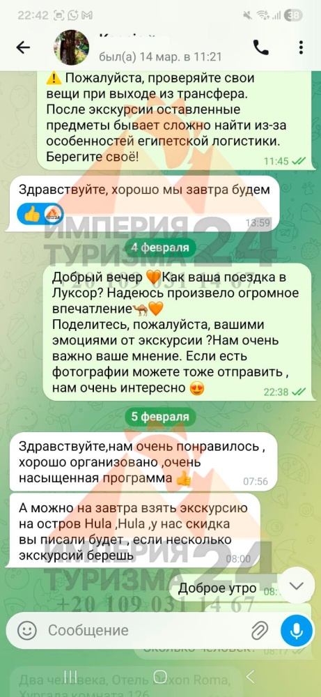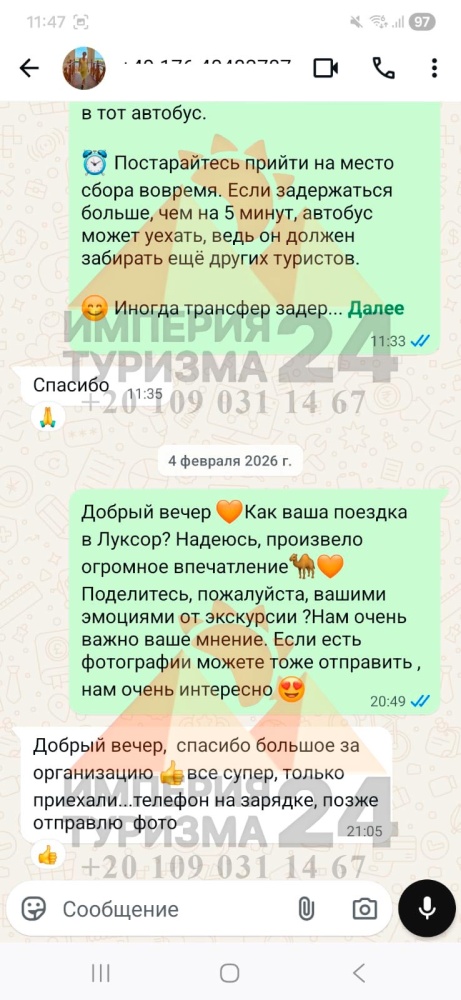 Просто напишите нам в WhatsApp или Telegram - и всё! Укажите название экскурсии, дату, отель, номер комнаты и свой контактный телефон. На сайте вы найдёте удобные иконки - кликаете, и уже на связи с нами.