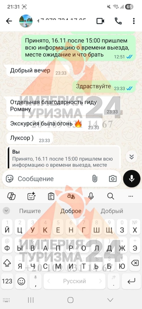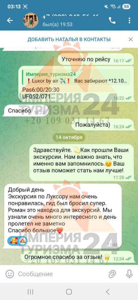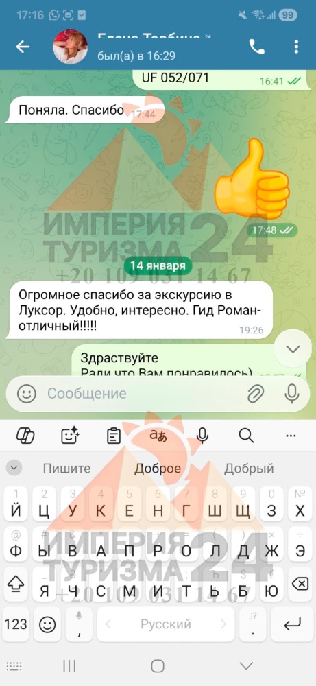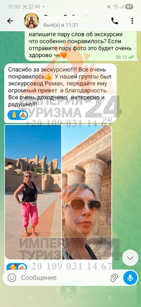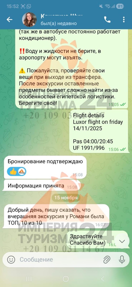Просто напишите нам в WhatsApp или Telegram - и всё! Укажите название экскурсии, дату, отель, номер комнаты и свой контактный телефон. На сайте вы найдёте удобные иконки - кликаете, и уже на связи с нами.