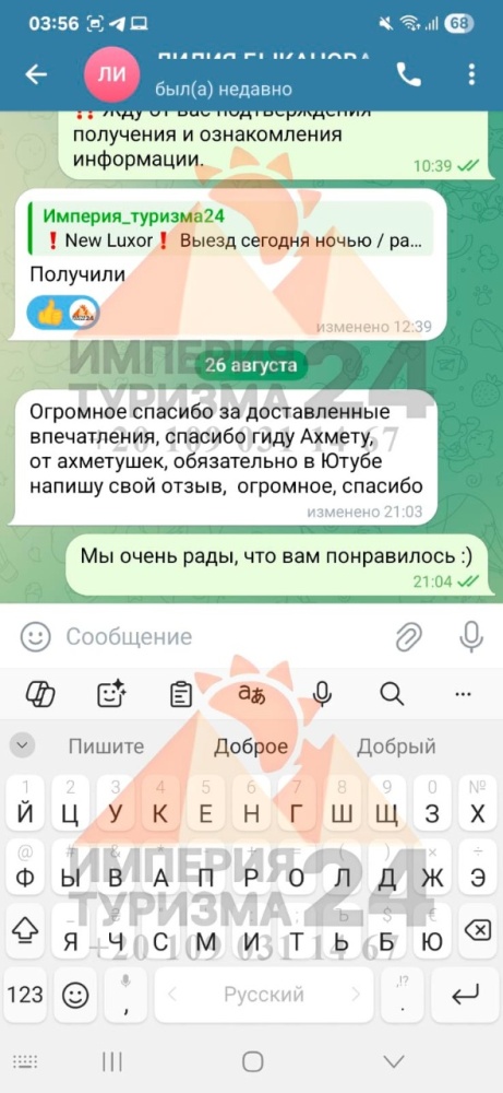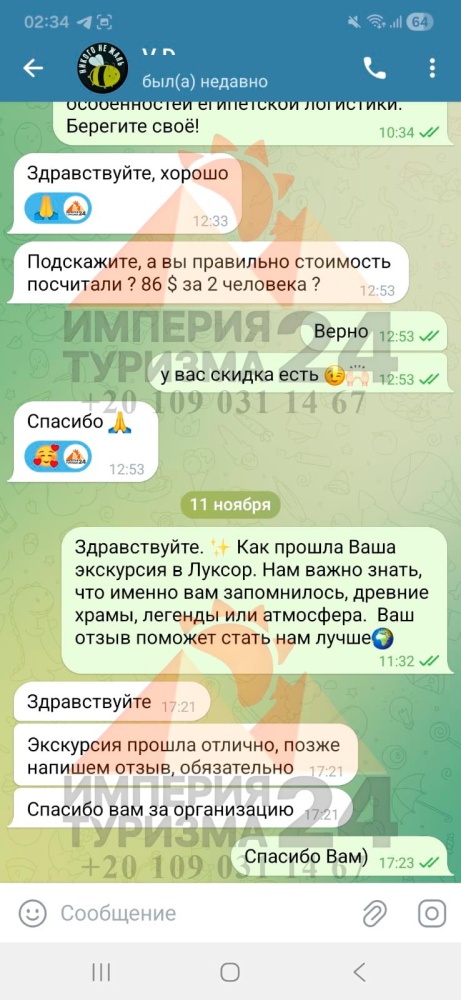 Просто напишите нам в WhatsApp или Telegram - и всё! Укажите название экскурсии, дату, отель, номер комнаты и свой контактный телефон. На сайте вы найдёте удобные иконки - кликаете, и уже на связи с нами.