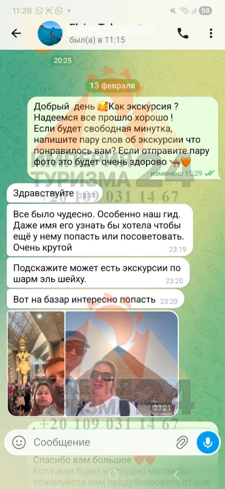 Просто напишите нам в WhatsApp или Telegram - и всё! Укажите название экскурсии, дату, отель, номер комнаты и свой контактный телефон. На сайте вы найдёте удобные иконки - кликаете, и уже на связи с нами.