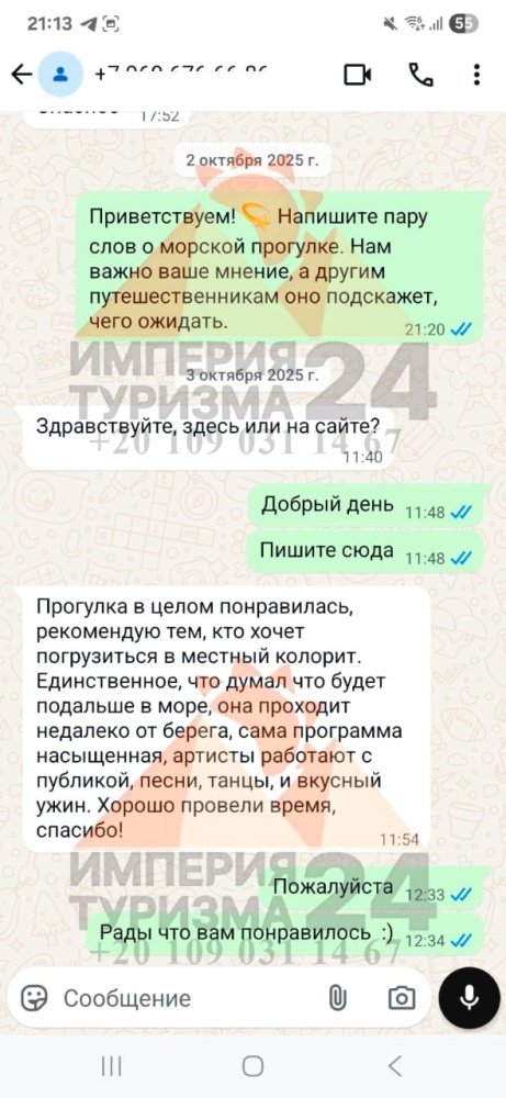 Просто напишите нам в WhatsApp или Telegram - и всё! Укажите название экскурсии, дату, отель, номер комнаты и свой контактный телефон. На сайте вы найдёте удобные иконки - кликаете, и уже на связи с нами.