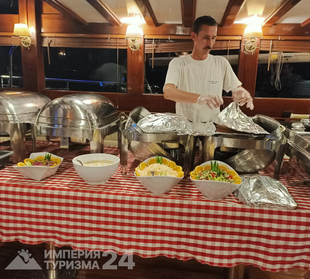 ❗ Внимание! В период Рамадана (18.02–20.03) на вечернем круизе танец живота не проводится. Возможны выступление певцов, шоу фокусника и танец Танура.