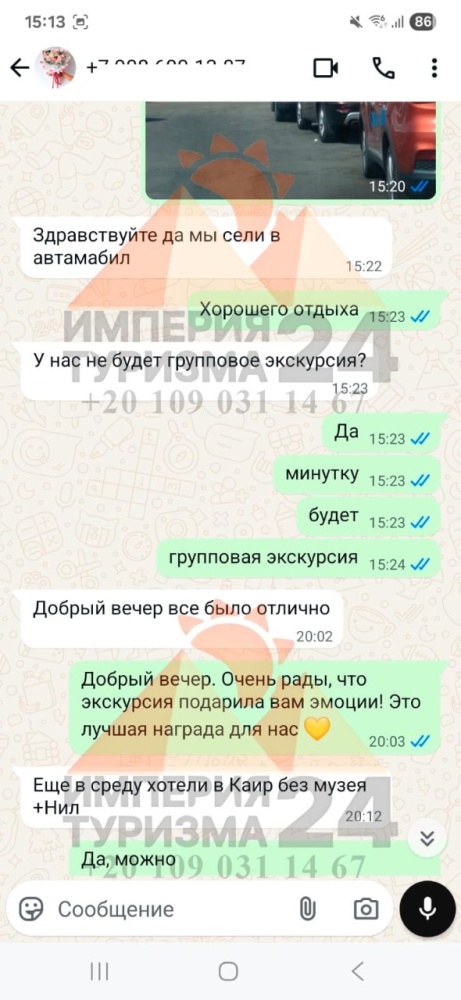 Просто напишите нам в WhatsApp или Telegram - и всё! Укажите название экскурсии, дату, отель, номер комнаты и свой контактный телефон. На сайте вы найдёте удобные иконки - кликаете, и уже на связи с нами.