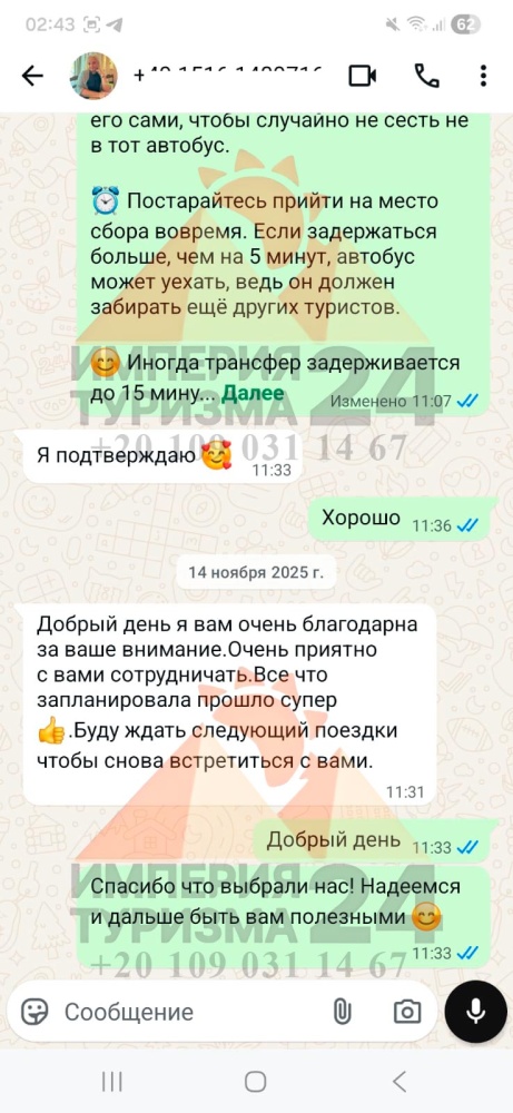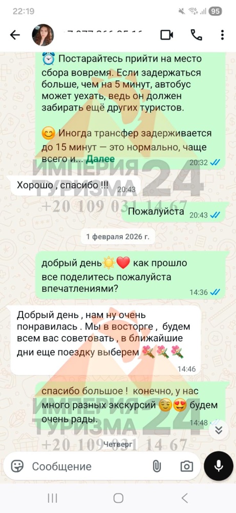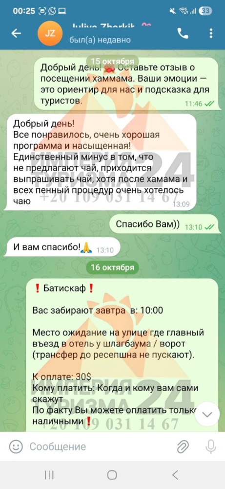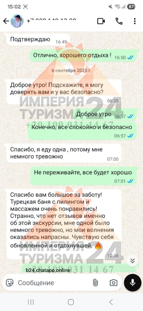 Просто напишите нам в WhatsApp или Telegram - и всё! Укажите название экскурсии, дату, отель, номер комнаты и свой контактный телефон. На сайте вы найдёте удобные иконки - кликаете, и уже на связи с нами.