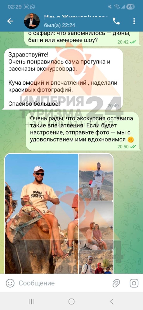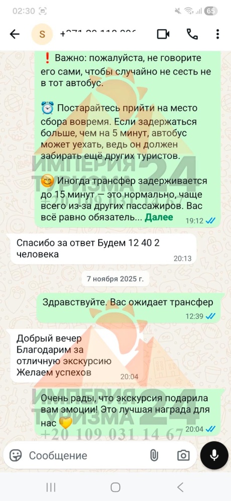 Просто напишите нам в WhatsApp или Telegram - и всё! Укажите название экскурсии, дату, отель, номер комнаты и свой контактный телефон. На сайте вы найдёте удобные иконки - кликаете, и уже на связи с нами.