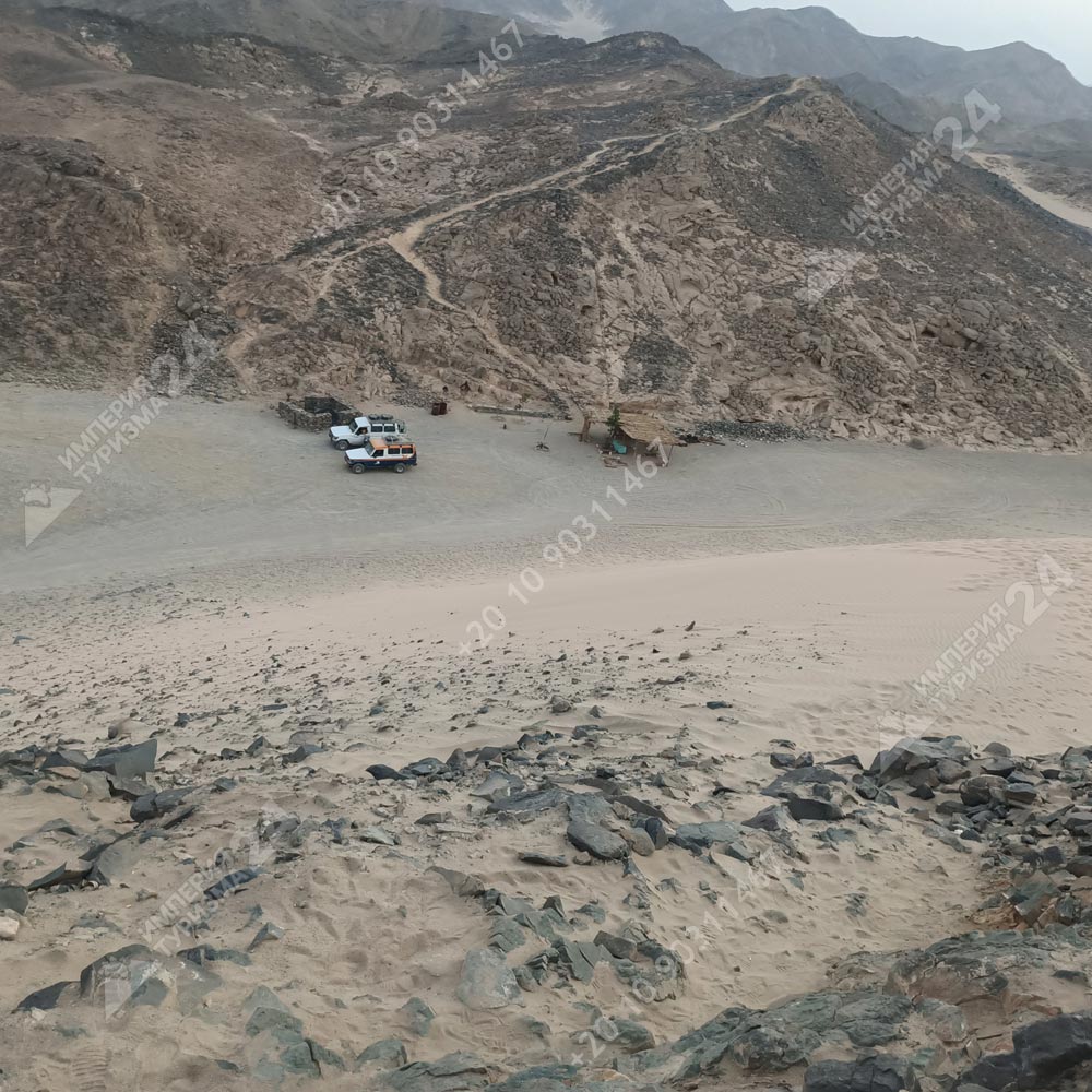 После обеда вас ждёт настоящее приключение по пустыне! На джипах вы отправитесь из отелей к точке старта программы. Выезд начинается с 13:30 — дорога займёт около часа в зависимости от расположения отеля;