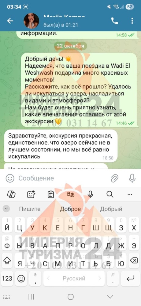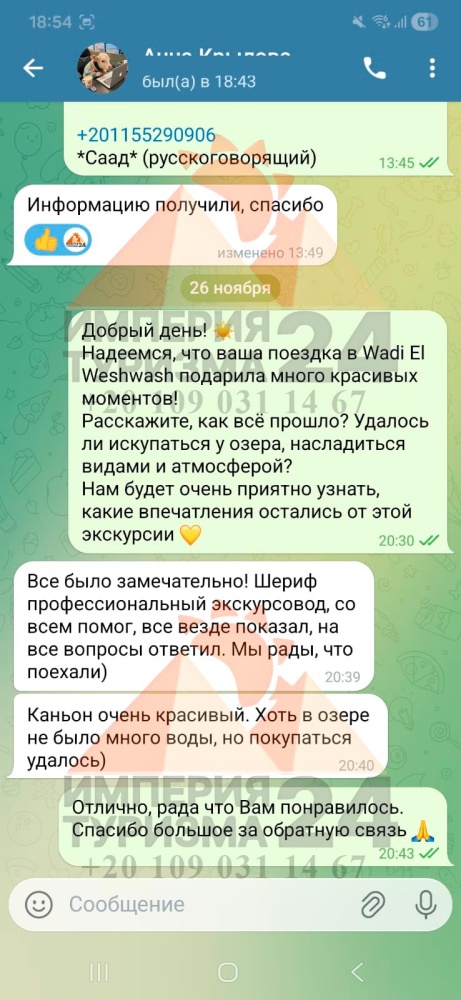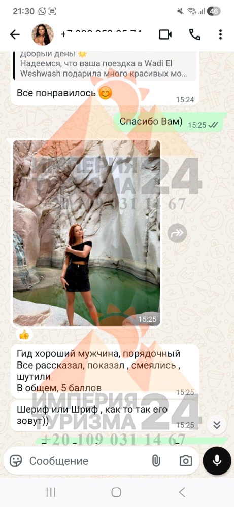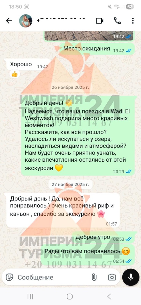 Просто напишите нам в WhatsApp или Telegram - и всё! Укажите название экскурсии, дату, отель, номер комнаты и свой контактный телефон. На сайте вы найдёте удобные иконки - кликаете, и уже на связи с нами.